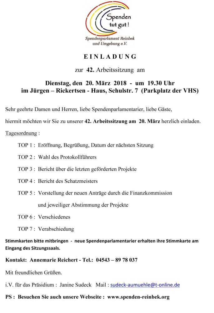 19. März 201819. März 2018 von Jan, posted in Allgemein, Spendenparlament Reinbek und Umgebung e.V.